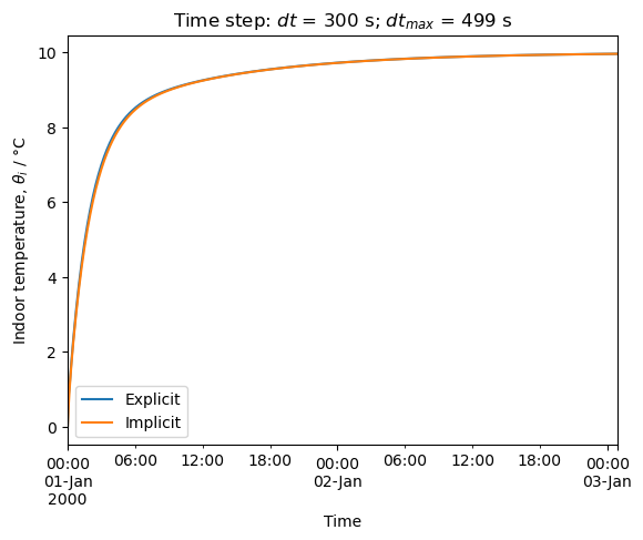 Note that the maximum time step for numerical stability of explicit Euler integration method is: dtmax = 499 s = 8.3 min.